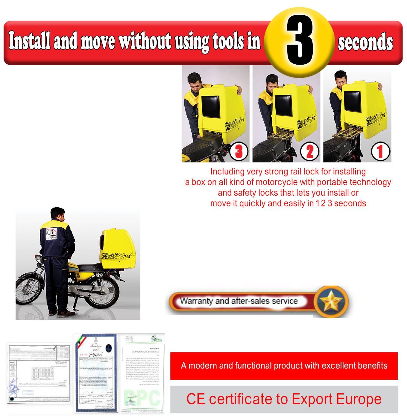Kala Bahman Pars Technical, Engineering and Trading Company with more than 20 years of experience in designing and manufacturing of technology products based on needs assessment, project-based problem-solving, and using its technical and professional team to create job opportunities based on new business methods. and the use of information technology to enhance the expertise and services, and in this way, able to design and produce special products and exclusive in the different fields of work and has several patents, and from 1391 as tech companies and It has been based in technology and knowledge parks, and this site is just for getting acquainted with some of the services. The company that has been designing and anufacturing the first modern box for the transport of motorcycle pike goods has been created and informed and prepared for a factory equipped with a design, production, assembling and packaging unit for motorcycle boxes as follows: Announces: Food Box, Restaurant Box, Fast Food Box, Motorbike Box, Picnic Box, Food Bar, Restaurant Box, Fast Food Box, Restaurant Box, Fast Food Box, Picnic Box, Motorcycle Box, Tool Box , Fiberglass box, plastic box, engine box,multipurpose box, modern motorcycle box, the box with a touchscreen, the illuminated motor box, the illuminated box, the food box, the supermarket box, the locking box, the motorcycle advertising box, the box Snap, the box courier, the hypermarket box, the box of all kinds of motorcycles, the box In a variety of colors, dashboards, pharmacy boxes and kidney boxes attached to motorcycles, electronic boxes